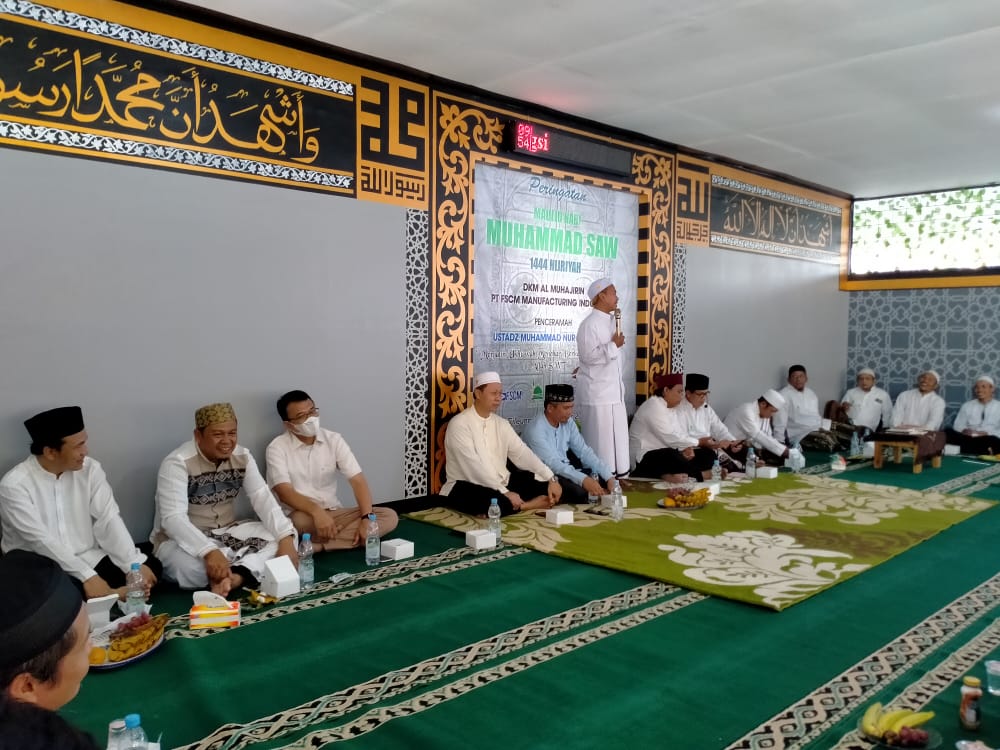 Cileungsi, KPonline – Dewan Kemakmuran Masjid (DKM) Al Muhajirin PT. FSCM Manufacturing Indonesia kembali menggelar agenda peringatan Maulid Nabi Muhammad SAW di lingkungan PT. FSCM Manufacturing Indonesia, plant 3 Cileungsi Bogor pada minggu pagi (23/10) setelah vakum 2-3 tahun akibat covid 19.
