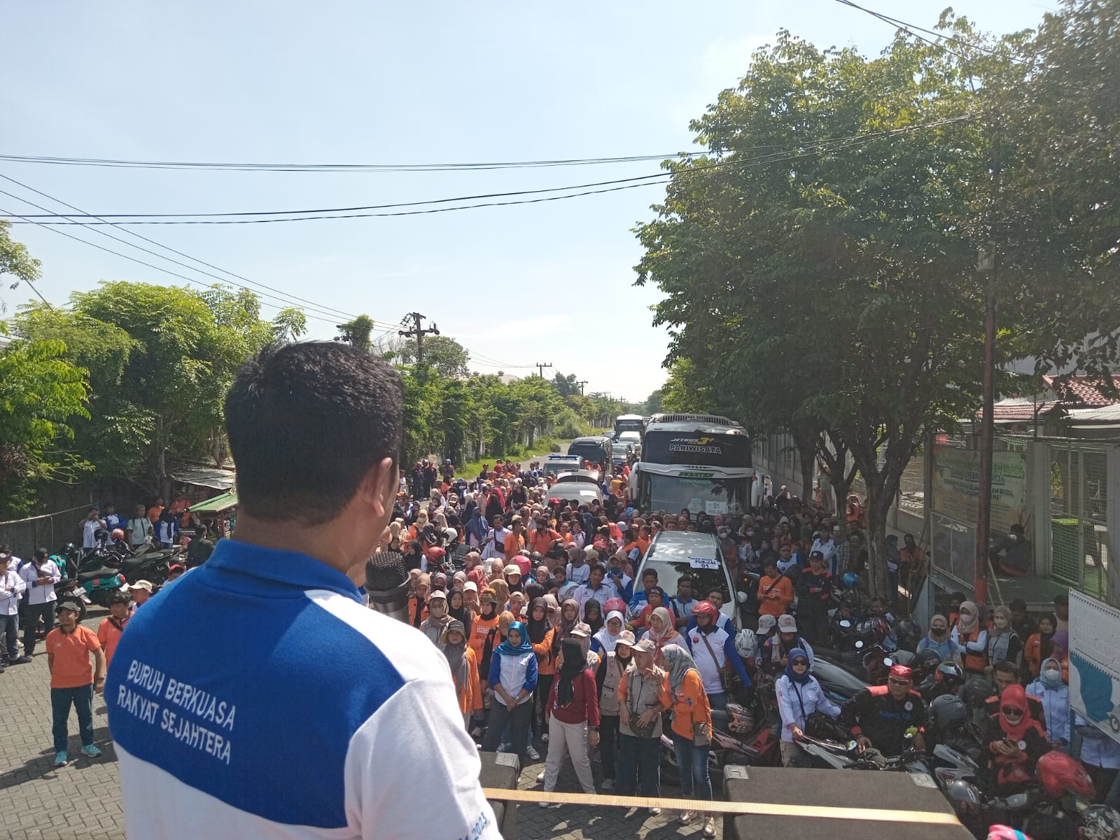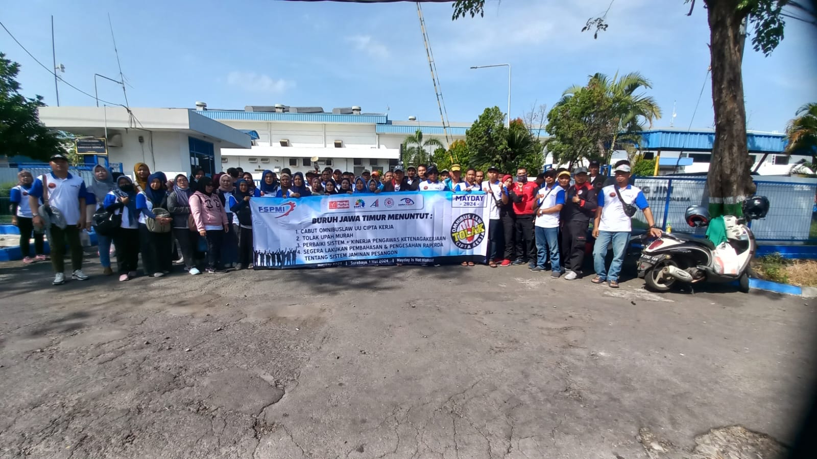Sekitar seribu masa aksi buruh terlebih dahulu berkumpul di depan PT. Jatim Autocomp Indonesia (JAI) Jl. Raya Wonoayu No.26, Wonoayu, Kecamatan Gempol, Kabupaten Pasuruan, Jawa Timur.