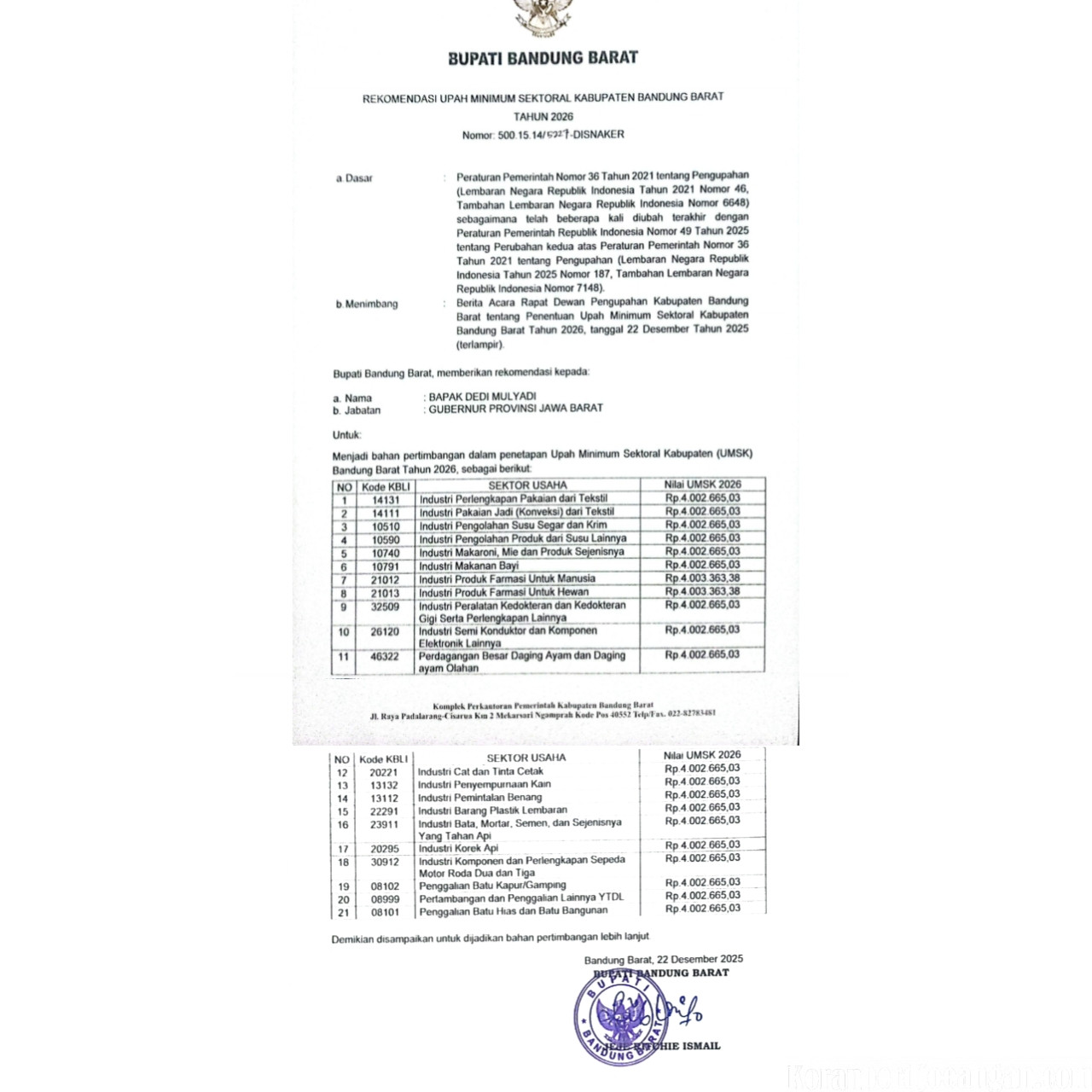 Contoh paling nyata terjadi di Kabupaten Bandung Barat. Awalnya, pemerintah daerah merekomendasikan 21 sektor usaha untuk masuk dalam UMSK 2026. Namun setelah revisi di tingkat provinsi, jumlah tersebut mengerucut tajam menjadi hanya delapan sektor.