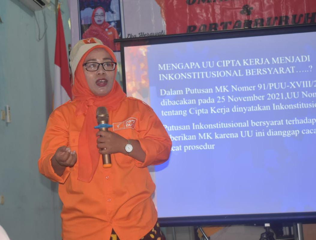 Dalam acara sharing dan caring ini, Ketua Exco Partai Buruh Kabupaten Mojokerto Eka Hermawati SH hadir untuk mengisi materi dan membagi pengalamannya pada para peserta.