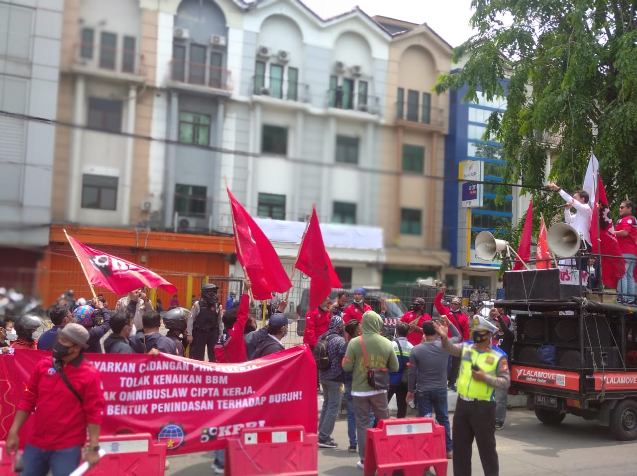 Jakarta, KPonline – Ratusan massa buruh Pengurus Komisariat Serikat Buruh Pelabuhan Nusantara-Federasi Buruh Transportasi Pelabuhan Indonesia (PK SBPN-FBTPI) tergabung di Konfederasi Persatuan Buruh Indonesia (KPBI) bersama Barisan Solidaritas dari unsur Buruh Lintas Sektor, hari ini, Senin (26/9/2022), Melakukan aksi unjuk rasa bertema Menegakkan Keadilan di Wilayah Objek Vital Nasional.