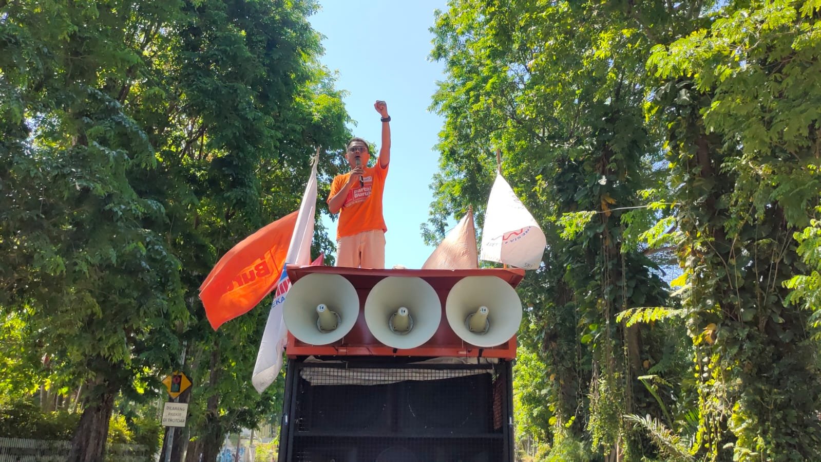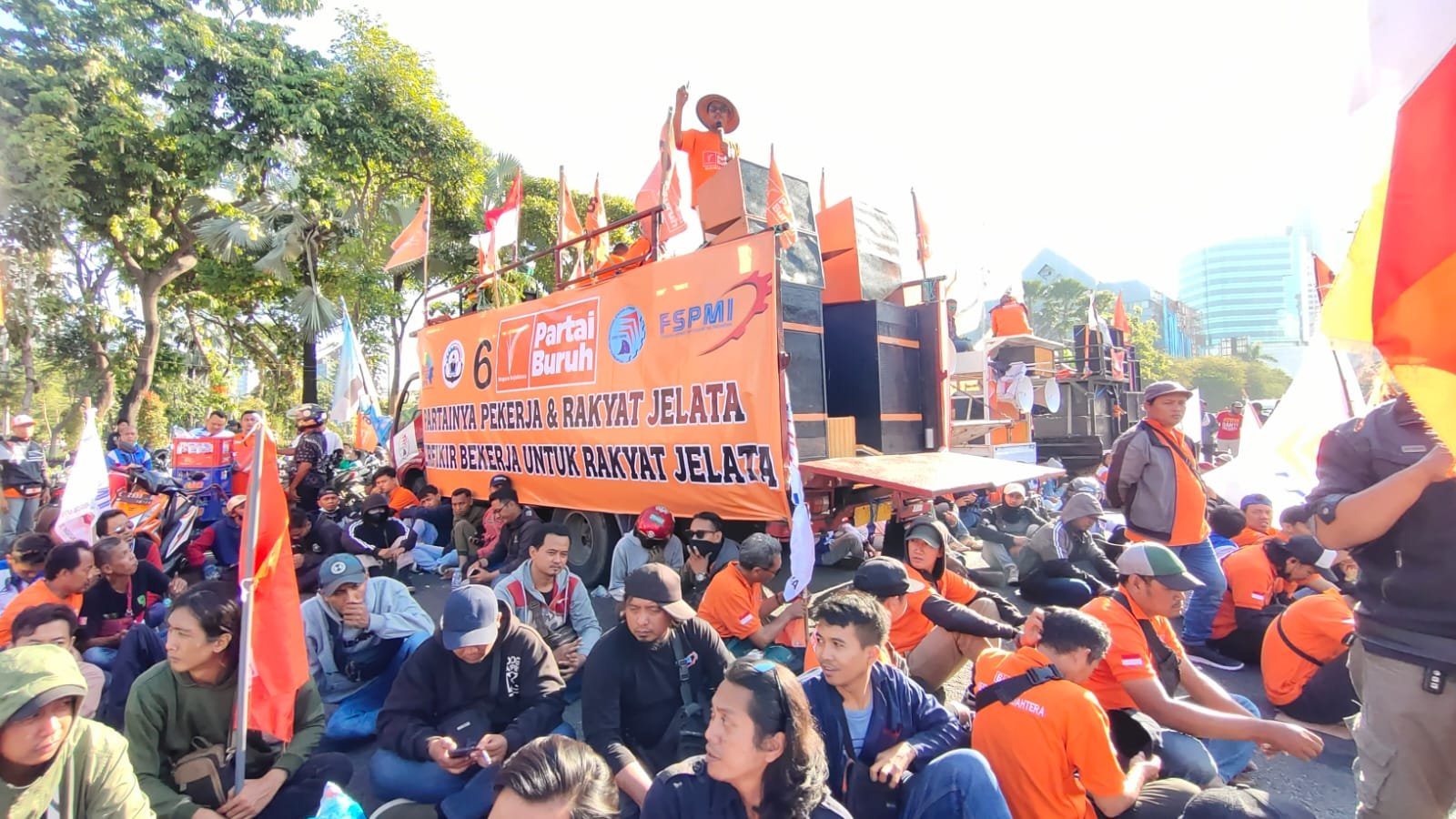 Dalam Orasinya Ketua Partai Buruh Exco Surabaya, Nuruddin Hidayat menyerukan anggotanya untuk turut turun ke jalan pada aksi tanggal 15 Agustus nanti di Kantor Balai Kota Surabaya.