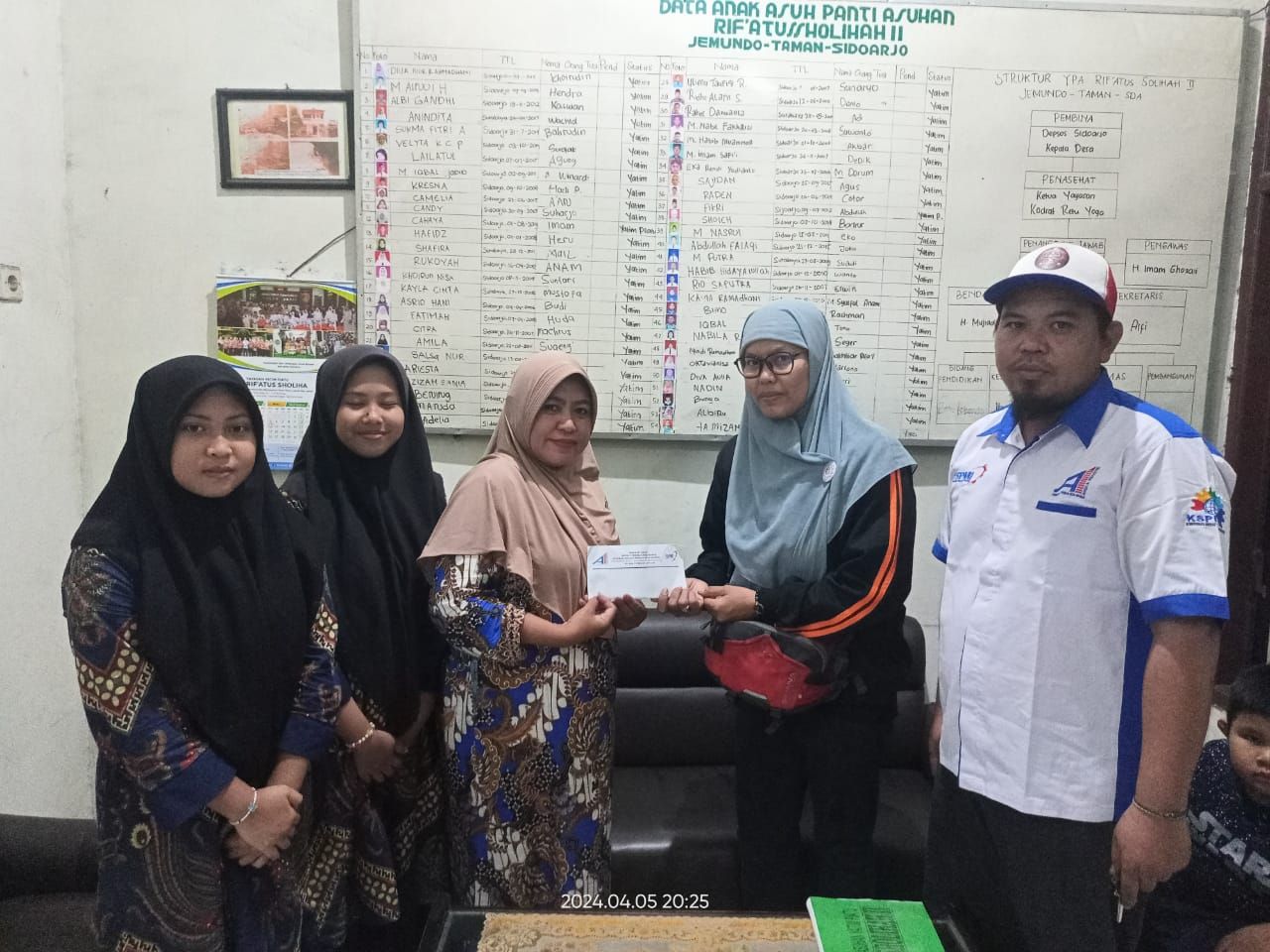” Untuk Santunan Anak Yatim oleh PC SPAI FSPMI Kab Sidoarjo langsung menyerahkannya kepada Yayasan Panti Asuhan Rif’atus Sholihah II Jemundo, Taman – Sidoarjo , dimana penyerahan nya dilakukan oleh Sri Astuti dan Gatot Mistriono “, Ujar Ketua PC SPAI Kab Sidoarjo,Eko Sunarto.
