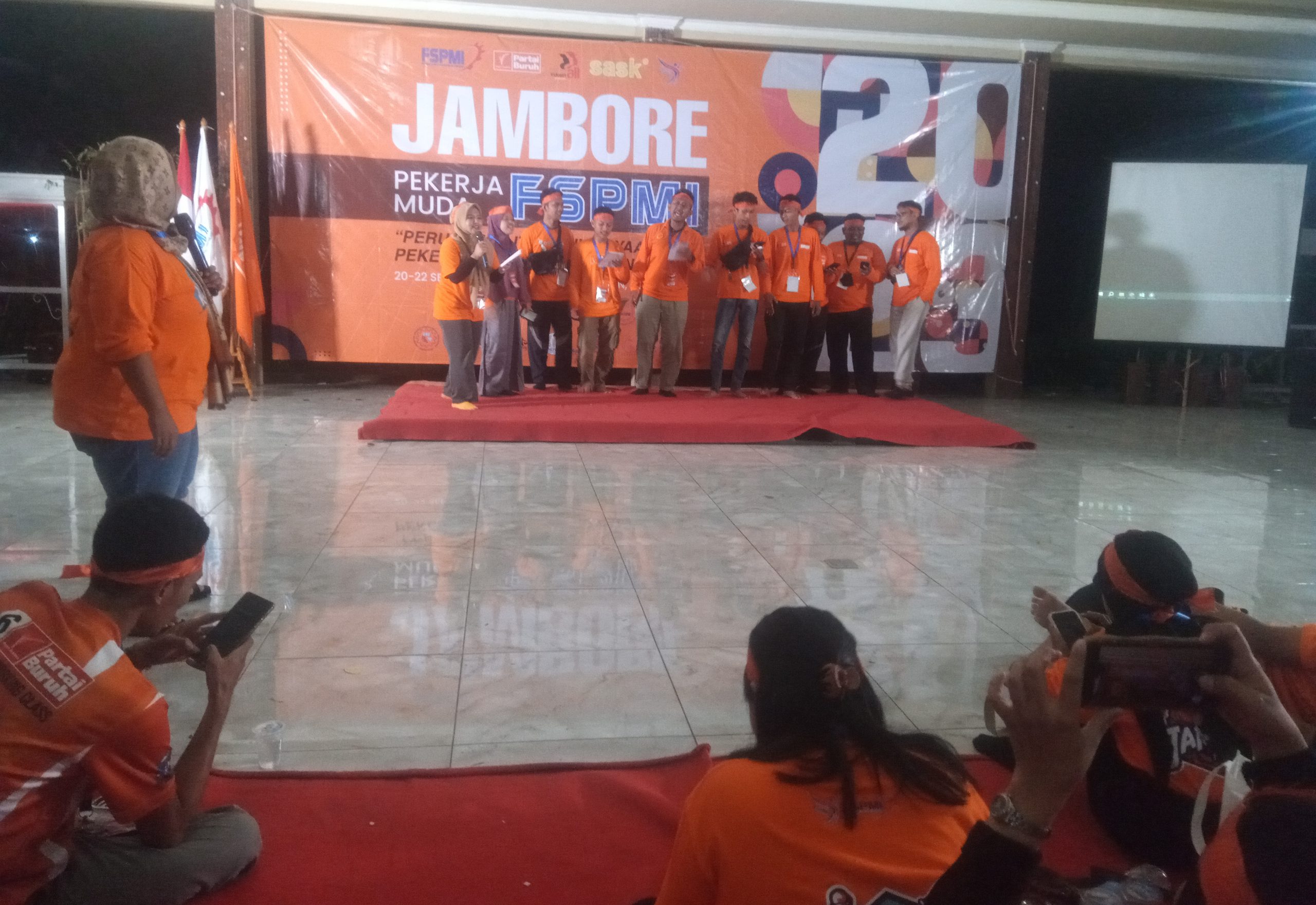 Agenda tersebut, dipandu oleh Rossa Febrianti dan Febrian Rahman Hakim selaku panitia Jambore Pekerja Muda FSPMI 2023.