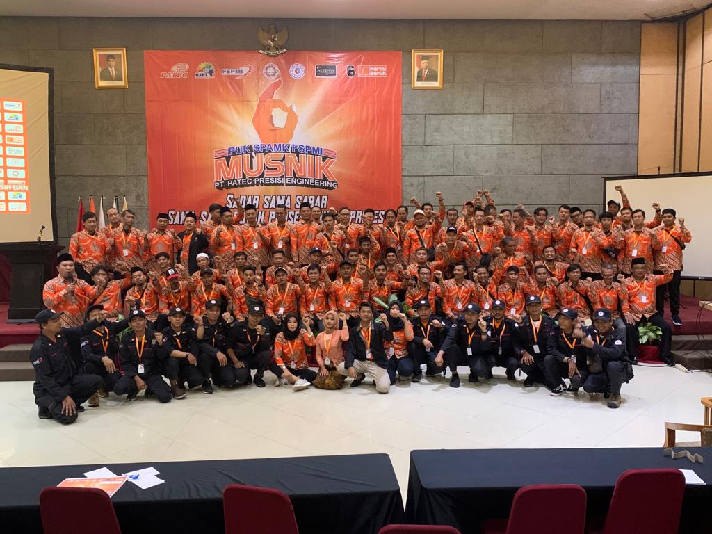 Samsul Arifin dari Pimpinan Cabang (Sekretaris Bidang Organisasi) menutup jalannya Musnik VI PUK SPAMK FSPMI PT. Patec Presisi Engineering dengan memukul gong sebanyak tiga kali. Agenda ini diakhiri dengan pembacaan doa dari saudara Rustani dan dilanjutkan dengan sesi foto bersama. (Indramajaya)