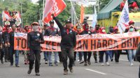 Surabaya, KPonline – Sejumlah ratusan buruh yang tergabung dalam bendera organisasi serikat pekerja FSPMI – KSPI, tampak telah bergerak merayap melewati jalur utama menuju pusat Kota Surabaya. Mereka melakukan aksi selengkapnya