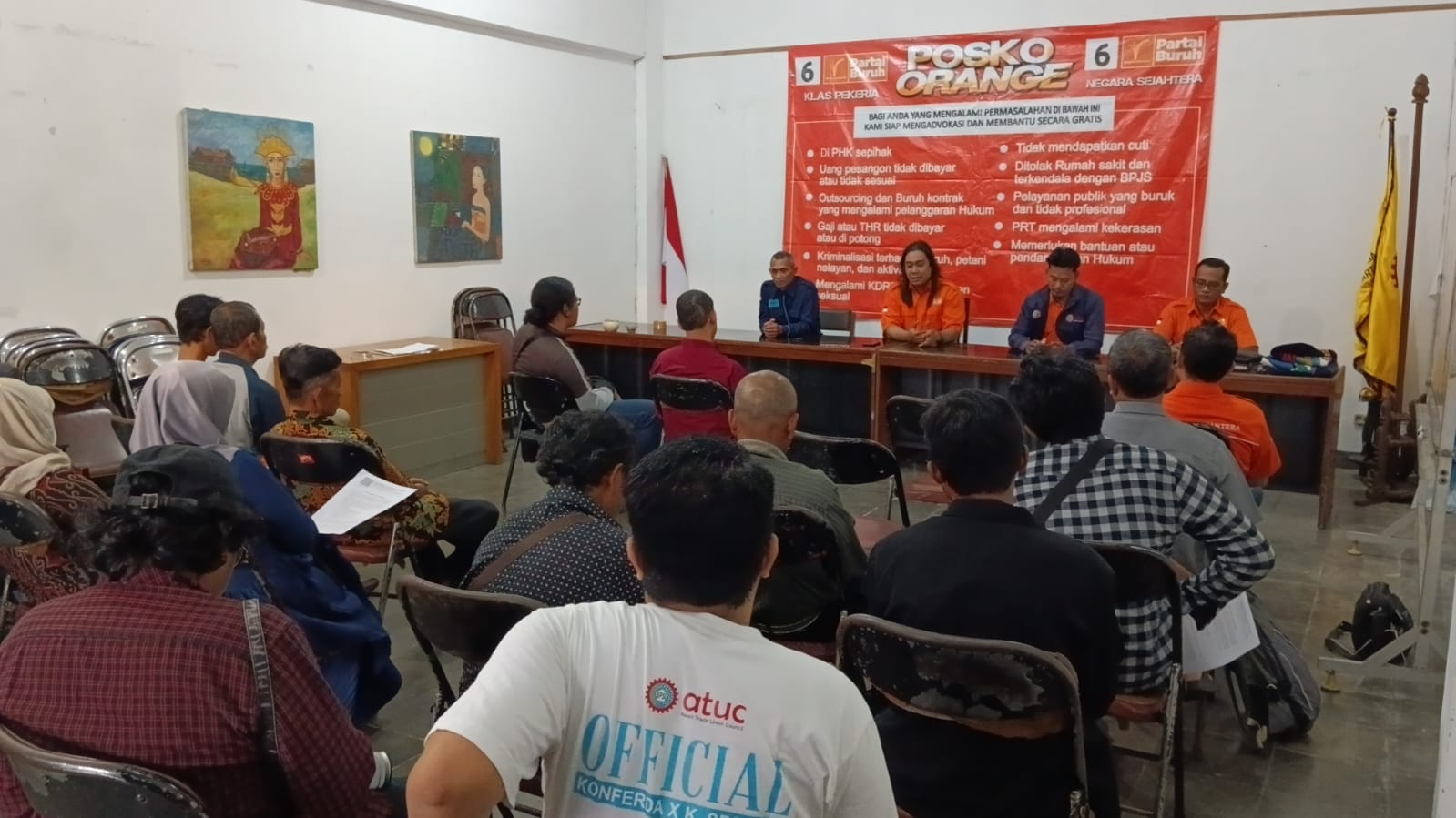 Yogyakarta, KPonline – EXCO Partai Buruh Daerah Istimewa Yogyakarta (DIY) mendirikan posko aduan Tunjangan Hari Raya (THR) 2023, di Jalan Bintaran Wetan Nomor 11, Pakualaman. Posko ini dinamai Posko Orange yang bakal memberikan bantuan hukum secara gratis kepada masyarakat yang menghadapi masalah terkait ketenagakerjaan.