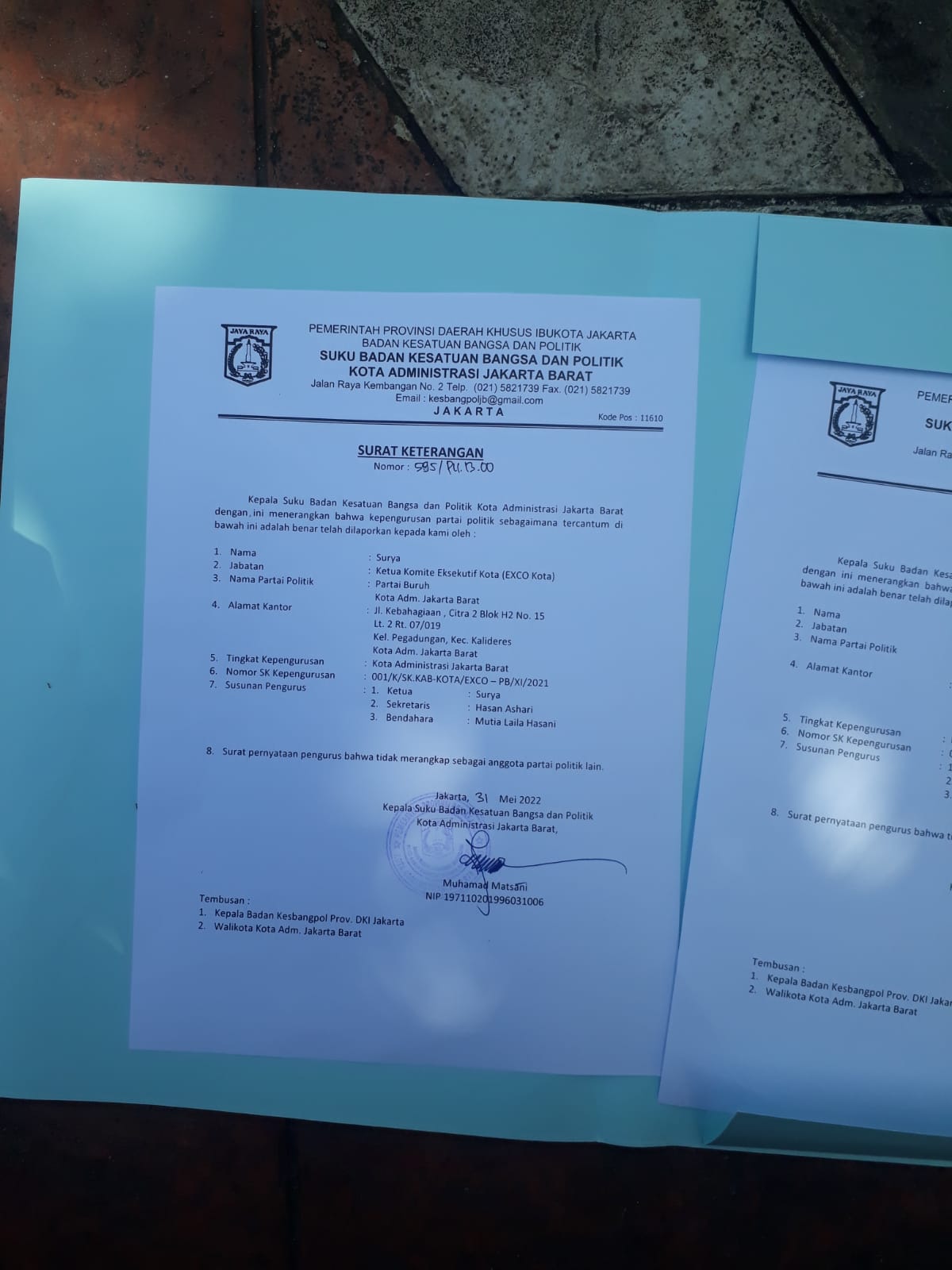 Partai Buruh Exco Jakarta Barat sudah resmi terdaftar dan mendapatkan pengakuan sebagai partai yang siap berjuang untuk masyarakat melalui politik di DKI Jakarta khususnya Jakarta Utara. Hal ini semakin menguatkan keyakinan seluruh jajaran pengurus partai untuk dapat lolos dan bisa mengikuti konstelasi politik di tahun 2024.