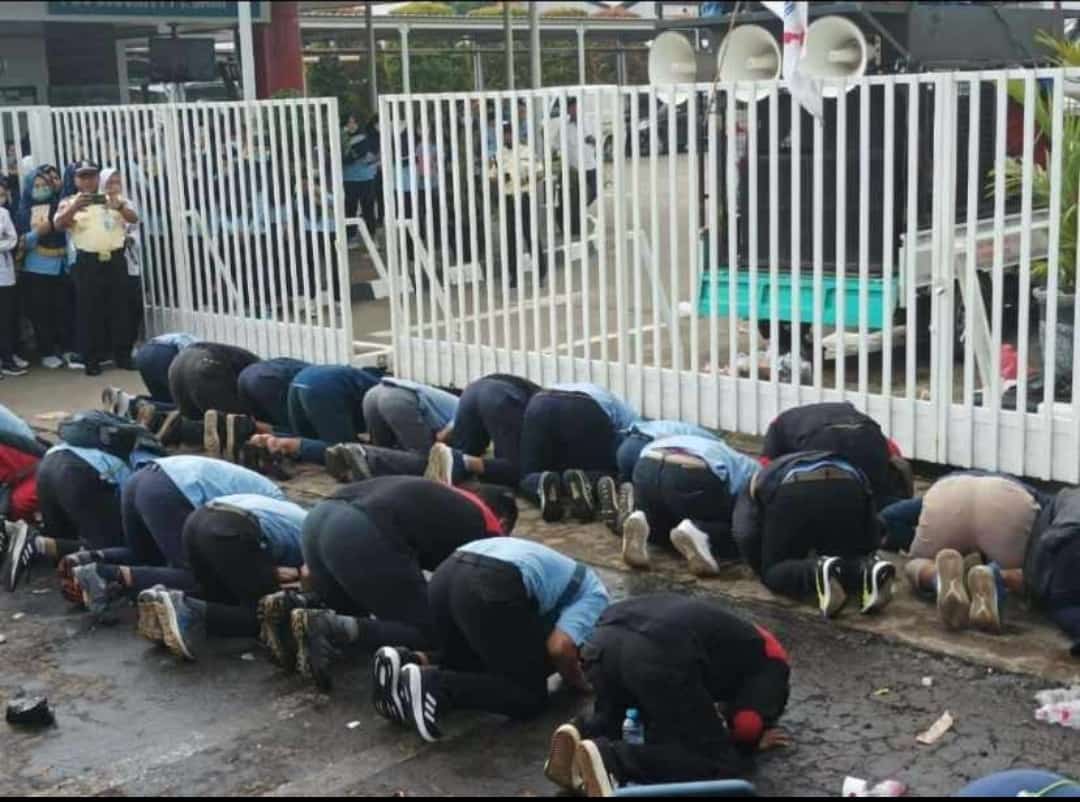 Jepara, KPonline – Sujud syukur di lakukan para pengurus PUK SPAMK FSPMI PT. SAMI JF Atas terpenuhinya tuntutan mereka. Hal ini dilakukan sebagai ungkapan puji syukur kepada Tuhan Yang Maha Esa atas terkabulnya tuntutannya dalam perundingan upah internal perusahaan di tahun 2023 ini.