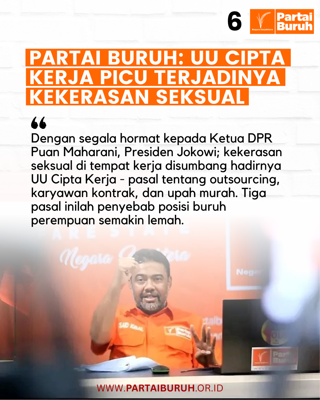 Jika memang sungguh-sungguh ingin mengatasi kekerasan seksual di tempat kerja, DPR jangan berhenti hanya sebatas pada pernyataan. Jangan berhenti hanya dengan mengutuk atau mengecam. Ambil tindakan sekarang: CABUT UU CIPTA KERJA.