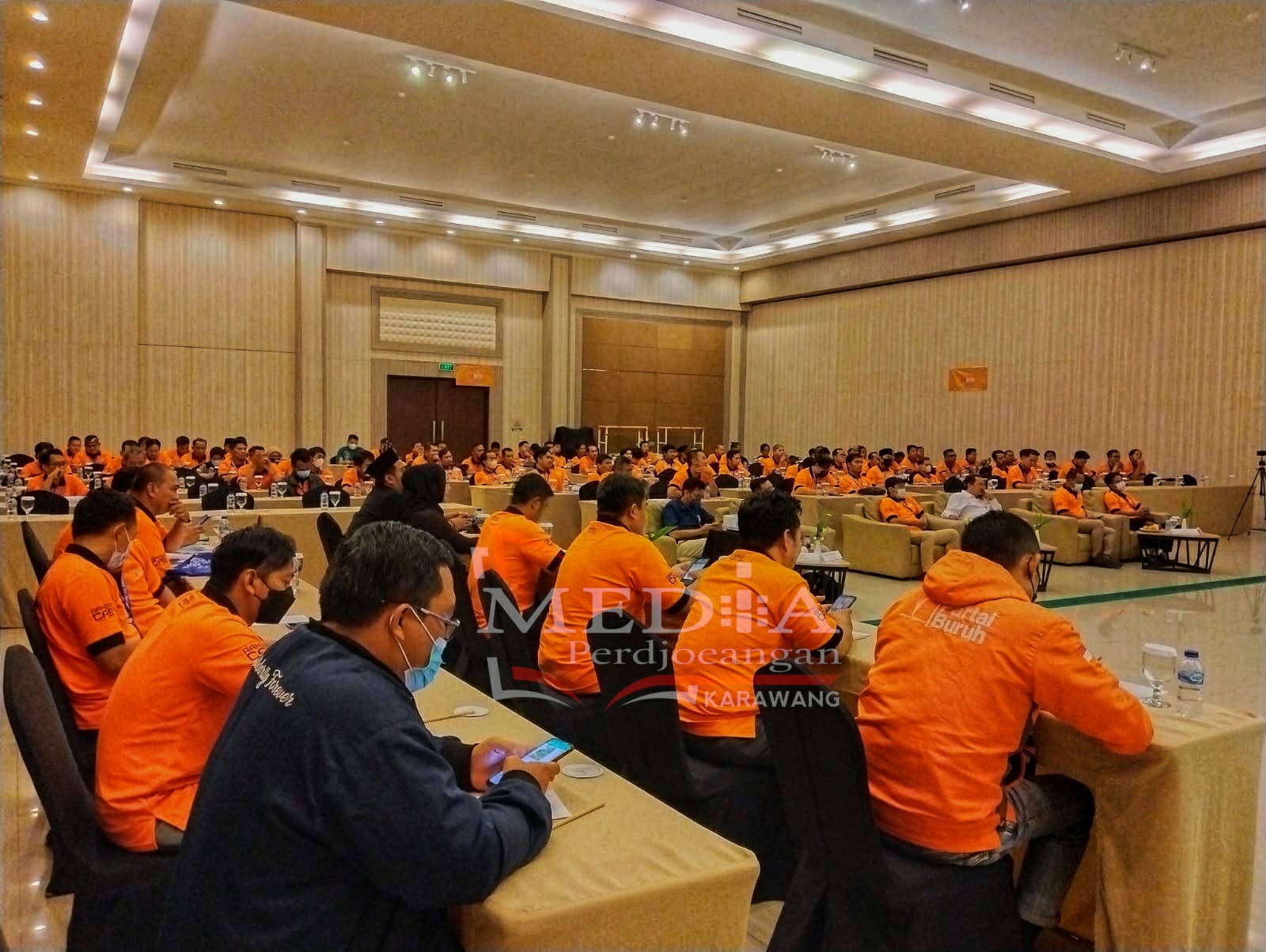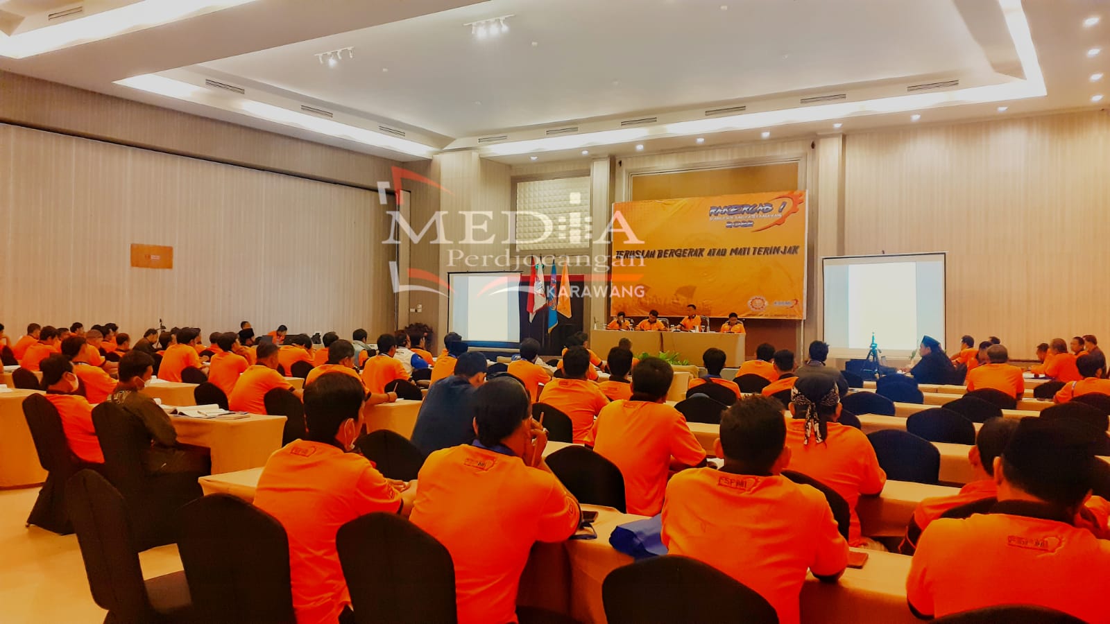 Kuningan, KPonline – Pimpinan Cabang Serikat Pekerja Autimotif Mesin dan Komponen Federasi Serikat Pekerja Metal Indonesia (PC SPAMK FSPMI) Kabupaten Karawang pada Kamis (25/08/2022) melaksanakan Rapat Kerja Cabang (Rakercab) I PC SPAMK FSPMI Kabupaten Karawang di Hotel Tirta Sanita Horisan, Kuningan Jawa Barat dengan tema “Teruslah Bergerak Atau Mati Terinjak” yang berlangsung dari Hari Kamis – Jum’at, tanggal 25 – 26 Agustus 2022.