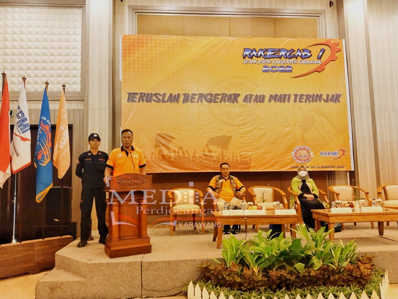 Acara Rakercab yang ke I PC SPAMK FSPMI Kabupaten Karawang ini dibuka oleh H. Furqon Ketua Umum PP SPAMK FSPMI juga tak lupa memberi selamat atas diadakannya Rakercab SPAMK FSPMI Kabupaten Karawang yang sedang dilaksanakan.