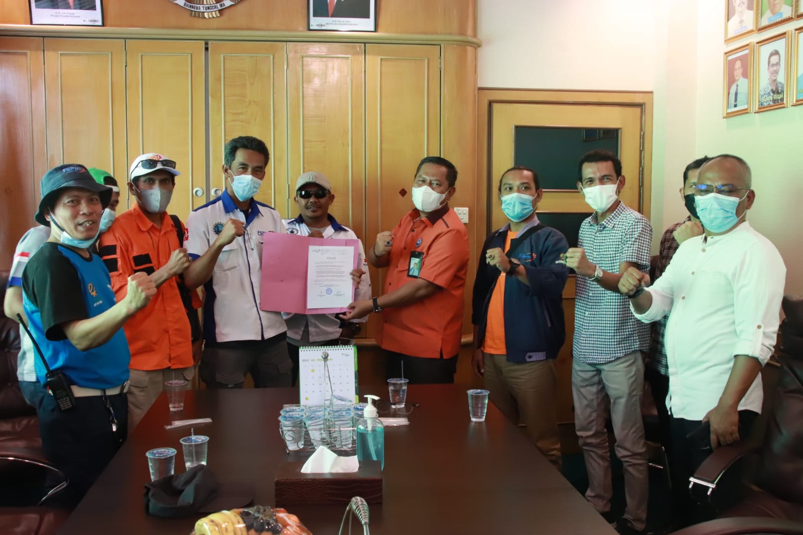 Soni Suharsono, selaku Kepala Cabang BPJS Ketenagakerjaan Kota Batam menyambut perwakilan dari Serikat Pekerja FSPMI Kota Batam.