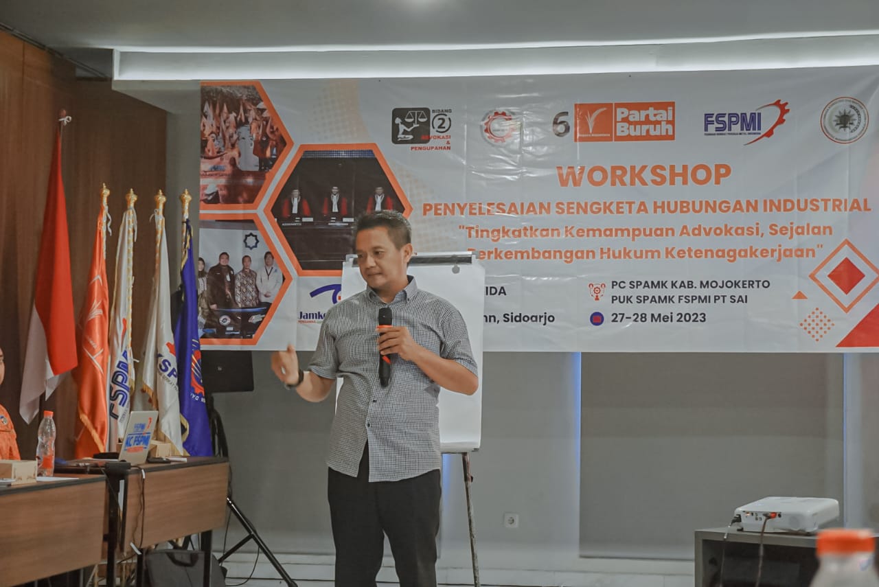 Sidoarjo, KPonline – PUK SPAMK FSPMI PT. SAI bersama Lembaga Konsultasi dan Bantuan Hukum Universitas Muhammadiyah Sidoarjo (LKBH UMSIDA) mengadakan training penyelesaian sengketa industrial di Cordela Inn Sidoarjo (27-28 Mei 2023).