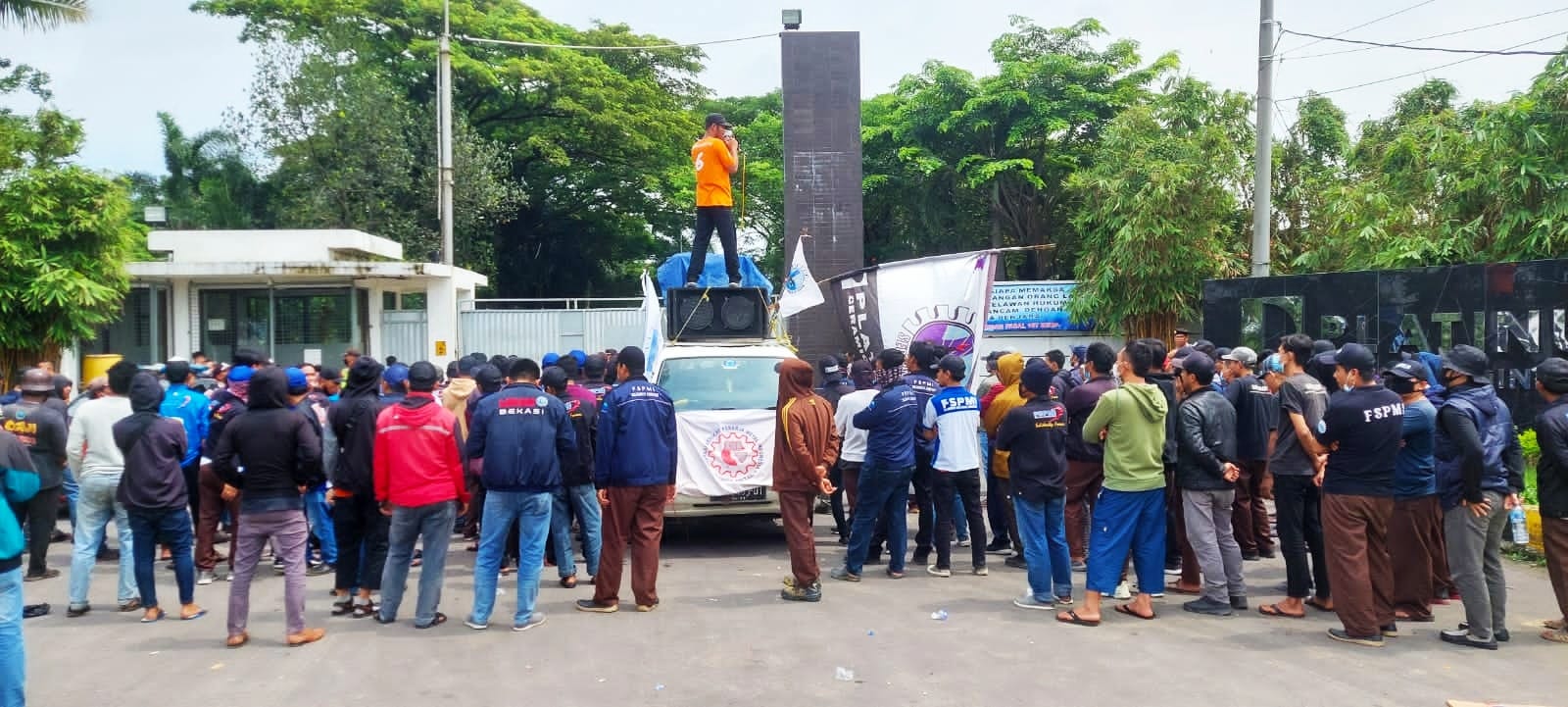 Bekasi, KPonline – Aksi demontrasi buruh Bekasi kembali terjadi. Kali ini berpusat di halaman PT. Platinum Ceramics Industry yang beralamat di Jalan Rengas Bandung Km. 61, Kedung Waringin, Cikarang Timur, Jatireja, Kec. Cikarang Timur, Kabupaten Bekasi, Selasa (28/02/2023).
