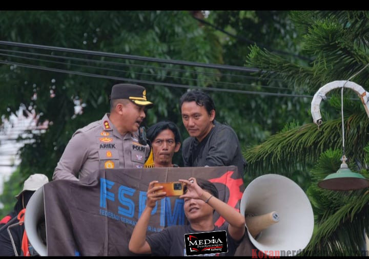 Subang, KPonline – Senin sore pukul enam belas lebih dua puluh menit waktu Indonesia bagian barat setelah kejadian bentrok fisik dengan aparat keamanan, massa aksi buruh dari FSPMI Subang dan massa aksi buruh yang tergabung di Aliansi Buruh Subang tetap berkumpul memenuhi halaman muka Kantor Disnaker Subang di Jalan Mayjen Sutoyo Siswomiharjo No.48, Karanganyar, Kec. Subang, Kabupaten Subang