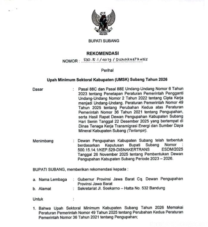 “Kami sudah menjalankan peran kami sebagai perwakilan pekerja sesuai aturan dan mekanisme yang ada, mengacu pada Peraturan Pemerintah Nomor 49 Tahun 2025 tentang Perubahan Kedua atas PP Nomor 36 Tahun 2021 tentang Pengupahan,” jelas Fahmi sebelum meninggalkan Kantor Disnakertrans Kabupaten Subang.