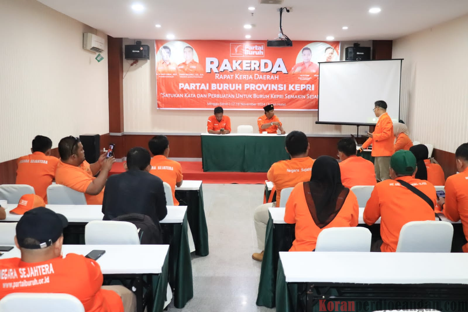 Batam, KPonline – Partai Buruh Provinsi Kepulauan Riau menggelar Rapat Kerja Daerah (RAKERDA) di Aviari Hotel Batam. Agenda tersebut digelar selama 2 hari. Minggu-Senin, (17-18/11/2024).