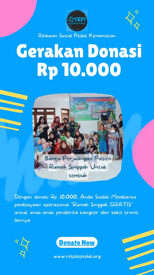 Salah satunya dengan berdonasi Rp. 10.000 untuk membantu pembiayaan & operasional “RUMAH SINGGAH GRATIS” untuk anak” penderita Kanker & penyakit kronis lainnya.